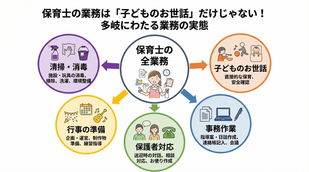 また、日々の保育だけが仕事ではありません。膨大な事務作業や行事の準備、保護者との日々のやり取りなど、目に見えにくい業務負担が非常に多いのが実態です。持ち帰り残業や休憩時間の確保が難しいことも、現場の疲弊を招いています。「やりがいだけでは働き続けられない」という切実な声も少なくありません。